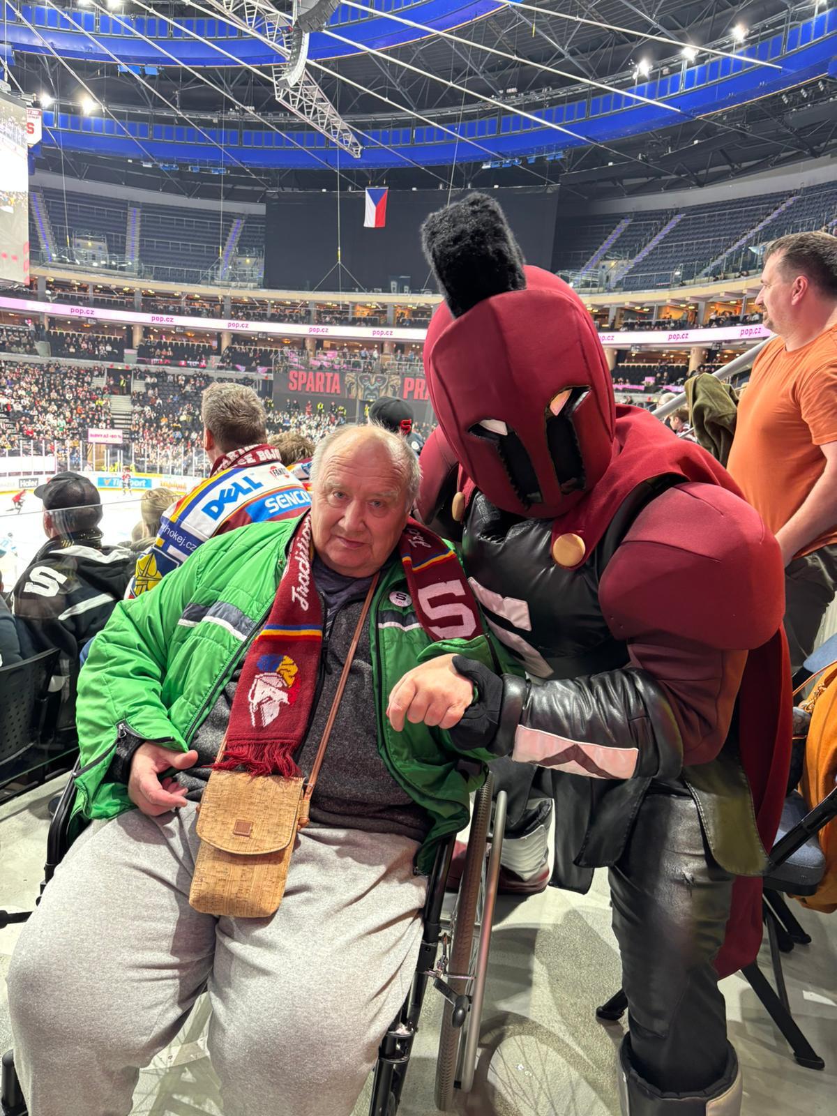 Pan Miroslav si moc přál podívat se na hokejový zápas. Naposledy viděl utkání před 6 lety, takže výlet na Extra Ligu pro něj byl opravdu splněný sen. Zápas HC Sparta s HC Bílí tygři Liberec v O2 areně ho ohromil, zápas s účastí 10 tisíce fanoušků ještě nezažil. Došlo i na focení s maskotem Sparty, fandění s šálou a užil si všech 6 gólů, které padly ve standardním herním čase i ten sedmý, který HC Sparta zajistil výhru. Jako nestranný fanoušek měl totiž radost ze všech . A ještě v pauzách stíhal sledovat, jak hraje jeho milovaná FC Slavie Praha. Děkujeme HC Sparta Praha za vstřícnost a těšíme se na další splněné přání! Nebojte se něco si přát.